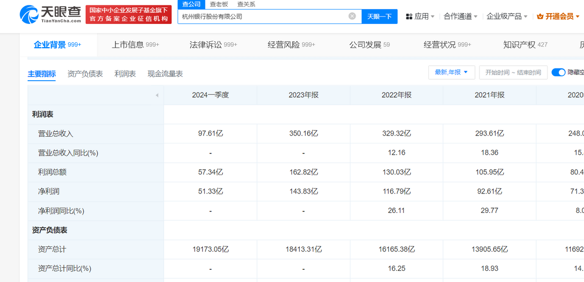 截至到2023年末,杭州银行资产总额18413.31亿元,同比增长13.91%。贷款总额8070.96亿元,较上年同期增长了14.94%。