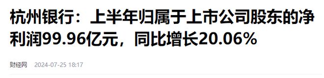 即便是2024年,他们披露出来的数据也是好于预期。2024年1-6月,杭州银行实现营业收入193.40亿元,较上年同期增长5.36%;实现归属于上市公司股东的净利润99.96亿元,较上年同期增长20.06%!