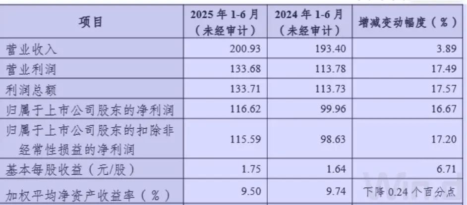 去年上半年,杭州银行净利润为99.96亿元,距离百亿只差400万研左右。今年上半年也是杭州银行净利润首次超过百亿元。