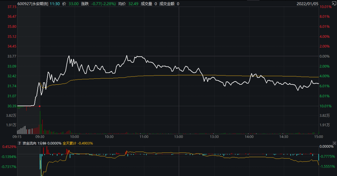 到了2022年,永安期货又遭遇“开门黑”,1月4日,其股价收跌9.99%,报33.77元/股。1月5日,永安期货跌5.48%,报31.92元/股。