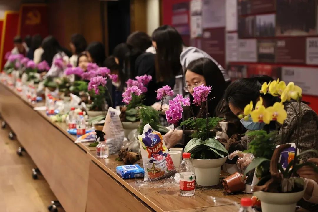 浓绿万枝红一点,动人春色不须多。“兰芷蕙心”花艺沙龙活动现场,跟随花艺师的指导,女员工们按照各自的喜好构思造型、设计色彩搭配。转瞬之间,缤纷生动的插花作品布满了活动场地。