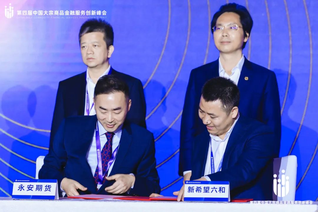 4月18日,新希望六和股份有限公司(SZ.000876)与永安期货在第四届中国大宗商品金融服务创新峰会上签订全面战略合作协议。永安期货党委书记、董事长葛国栋主持签约仪式,新希望集团党委书记、新希望六和执行董事长、总裁张明贵,永安期货党委副书记、总经理黄志明代表双方签约。新希望六和首席战略投资官、董事会秘书兰佳,永安期货首席投资官吴晓峰参加相关活动。