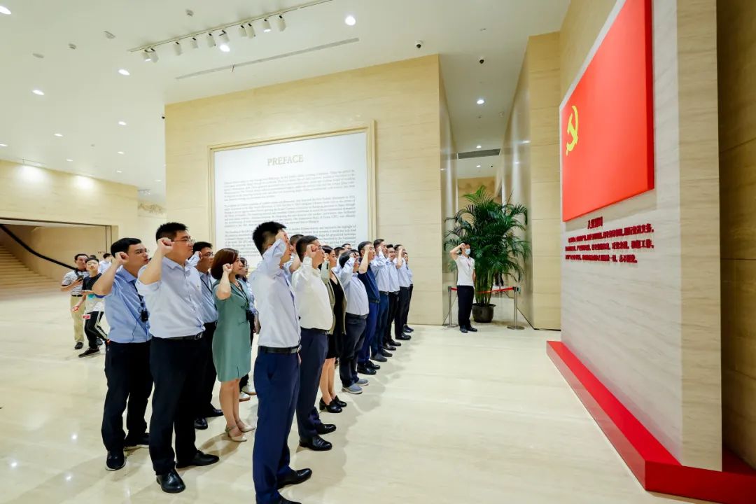 走进中共一大纪念馆,沿着“前仆后继、救亡图存”“民众觉醒、主义抉择”“早期组织、星火初燃”“开天辟地、日出东方”“砥砺前行、光辉历程”等板块,大家结合现场丰富的图文、历史文物和工作人员的讲解,认真学习伟大建党精神形成的时代背景、理论来源和实践基础。面向鲜红的党旗,党员干部员工们重温入党誓词,感受信仰的力量。