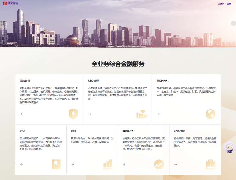 “数智永安”作为永安期货“十四五”期间的核心战略,在业务数字化、服务线上化、投研一体化、运营精细化、监督智能化上都取得了丰硕的成果,已建成富有永安特色的数智支撑体系,机构客户服务平台“永易企”正是这一战略下的重要实践成果。立足行业数智化转型新趋势,永安期货将正式发布“十五五”数智永安规划,持续深化科技与业务的深度融合,以更优质的数智化服务赋能机构客户发展,助力期货行业数智化建设迈向新台阶。