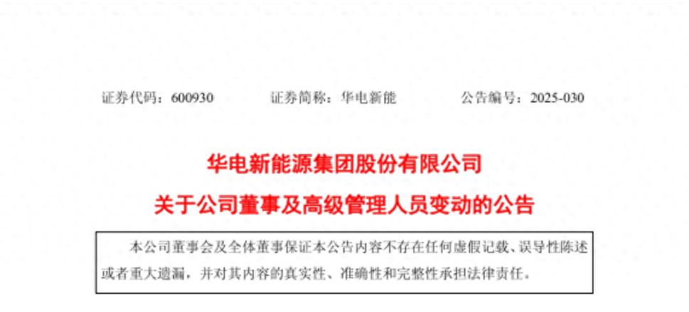 据悉,12月22日,华电新能董事长卸任总经理,原财务负责人吴豪被提拔至总经理岗位并获董事提名;副总经理、董秘、财务负责人同步调整,两位董事辞职。