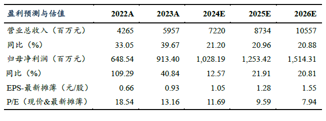 公司发布2024年半年度报告。2024年上半年公司实现营业收入32.49亿元,同比增长22.92%;实现归母净利润4.50亿元,同比增长13.62%。其中,2024Q2单季度公司实现营业收入16.07亿元,同比增长15.88%,环比下降2.14%;实现归母净利润2.18亿元,同比下降3.80%,环比下降6.04%。公司2024Q2业绩整体符合我们的预期。