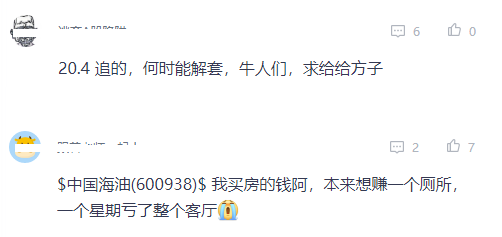 个股的股价出现了大幅回调,最焦急的可能是持有它的股民了。在网上,有股民表示:“20.4追的,何时能解套?牛人们,求给个方子”、“……本来想赚一个厕所,一个星期亏了整个客厅”。