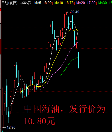 只不过,等到中国海油上市之后,这些中签弃购的股民可能后悔得“拍肿了大腿”。中国海油在上市之后,股价由发行价10.80元最高上涨至20.49元,接近翻番,最高股票市值欲触碰万亿元大关。