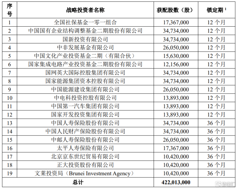 格隆汇12月23日丨中国移动(600941.SH)公布首次公开发行股票网下初步配售结果及网上中签结果公告,最终获配的战略投资者名称、获配股数及锁定期安排具体如下: