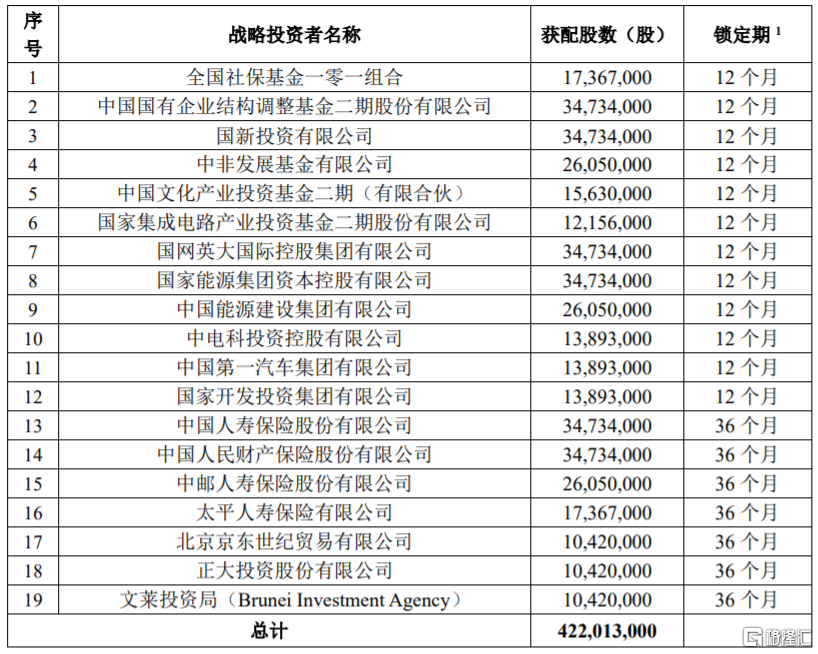 中国移动(00941.HK)公布首次公开发行股票网下初步配售结果及网上中签结果公告,最终获配的战略投资者名称、获配股数及锁定期安排具体如下: