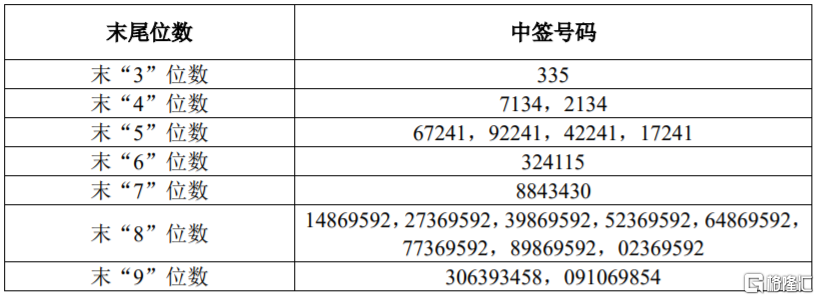 凡参与网上发行申购中国移动A股股票的投资者持有的申购配号尾数与上述号码相同的,则为中签号码。中签号码共有43.6032万个,每个中签号码只能认购1000股中国移动A股股票。