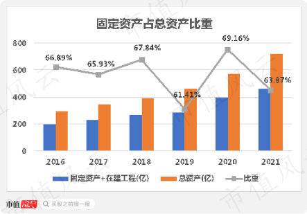 公司固定资产加在建工程占总资产的比重近6年一直处于60%以上,妥妥属于重资产。