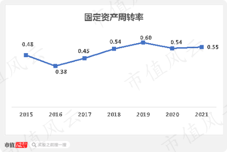 另外可以看出,公司的运营效率并没有随着规模增加而出现上升,固定资产周转率近两年来维持在0.55附近。