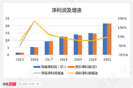 2015-21年,公司扣非净利润累计达78.7亿,从2018年开始每年都在10亿以上且随着规模增加而稳步增加,2021年突破20亿。