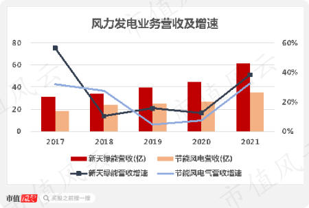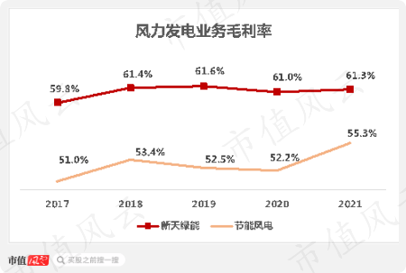 风力发电业务盈利水平一直处于高水平且很稳定,2021年底为61.3%,高于节能风电(601016.SH)6个百分点。