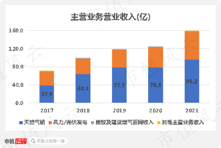 公司营收约60%来源于天然气销售,约35%来自于风力/光伏发电销售,其中风力发电是主力,光伏发电营收不足1%,与其余业务一样我们忽略不计。