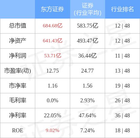 东方证券主要指标及行业内排名如下:
