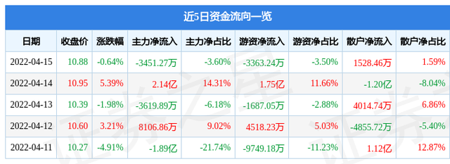 资金流向数据方面,上个交易日主力资金净流出3451.27万元,游资资金净流出3363.24万元,散户资金净流入1528.46万元。近5日资金流向一览见下表: