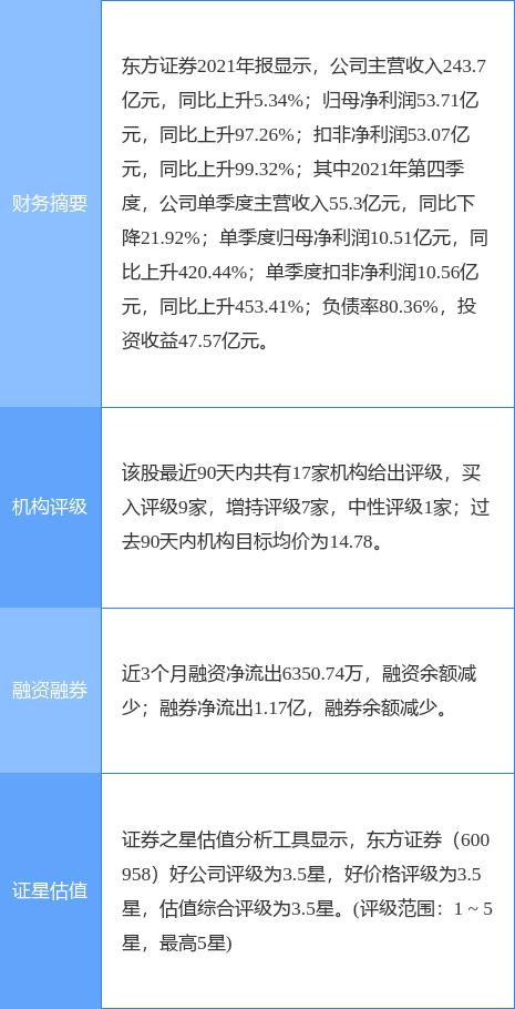 东方证券(600958)个股概况: