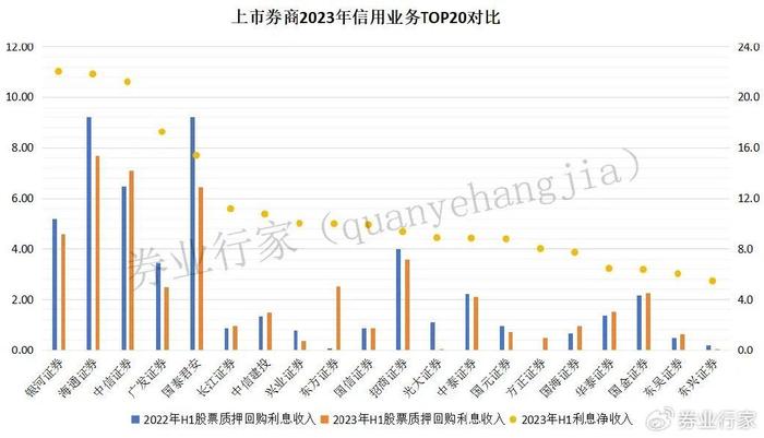 为此,行家进一步查看了信用业务排名TOP20的上市券商。