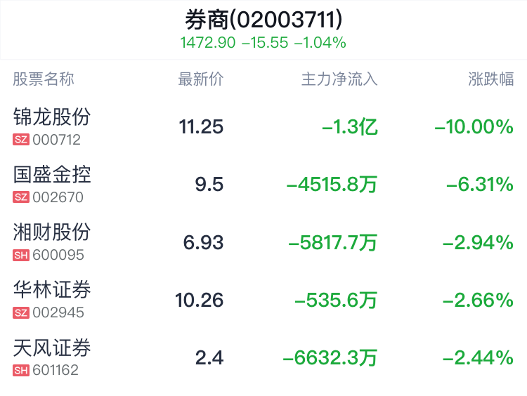 08月06日,券商概念盘中跳水,截至13点33分,券商概念整体指数下跌1.04%,报1472.900点。