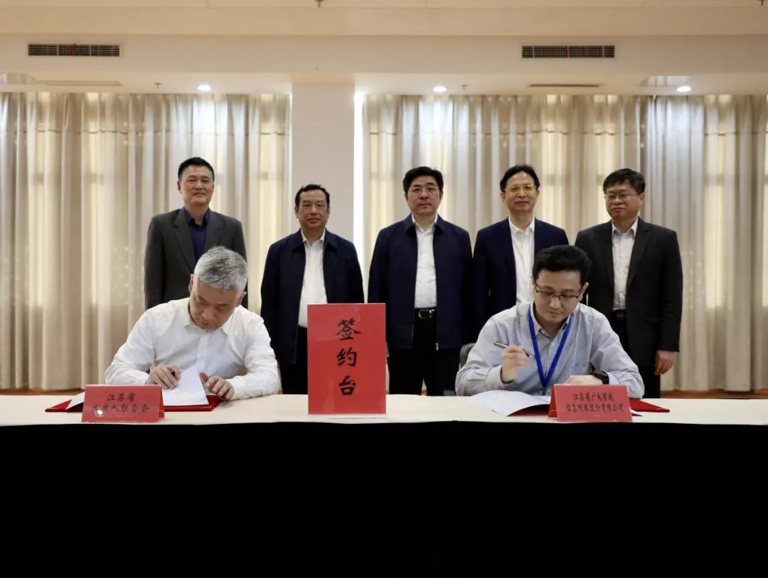4月8日下午,江苏省残联与江苏有线签署了“阳光江苏”融媒体信息化服务平台战略合作协议。江苏省残联党组书记、理事长万力,党组成员、副理事长杜晓镇,一级巡视员胡乃亮以及相关处室负责人,江苏有线党委书记、董事长姜龙,党委副书记、总经理庄传伟,党委委员、纪委书记陶雨生,党委委员、副总经理陈松以及相关部门负责人共同出席了签约活动。