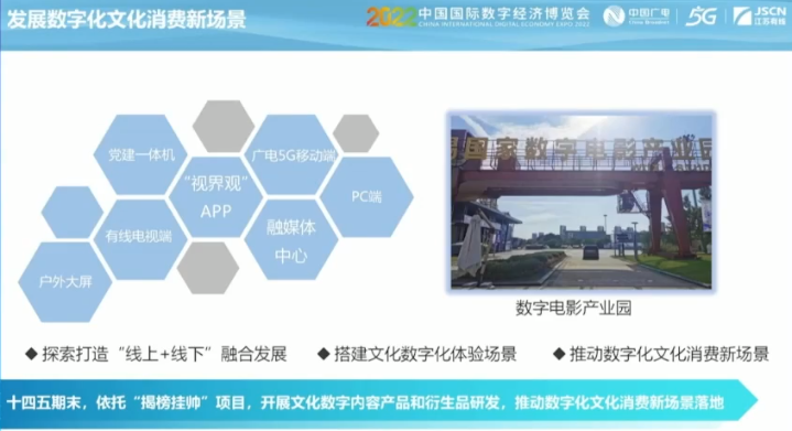 11月15日,2022中国国际数字经济博览会论坛会议——“2022文化数字化战略发展高峰论坛”在线上举行,江苏省广电有线信息网络股份有限公司党委书记、董事长姜龙作了题为《赓续文脉,数智赋能,探索文化数字化江苏新实践》的主旨发言,此文为DVBCN笔者根据姜董的线上发言而作。