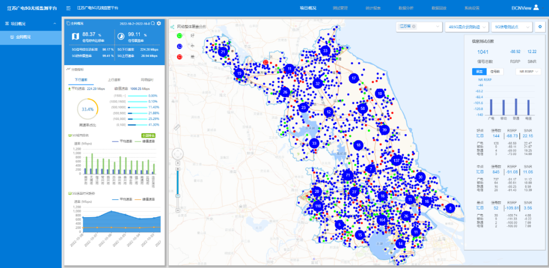 自中国广电打响广电5G建设发令枪以来,江苏有线始终秉持创新求实的理念,以冲刺的姿态持续领跑行业发展。2022年初,考虑到广电行业存在对5G无线网络把控能力不足的痛点,江苏有线技术研究院自主研发了广电5G无线监测系统及“苏广云测”APP,为广电行业量身打造了包括信号测试、自动上传、数据分析、可视化显示、问题点挖掘及导出等功能的整体解决方案。