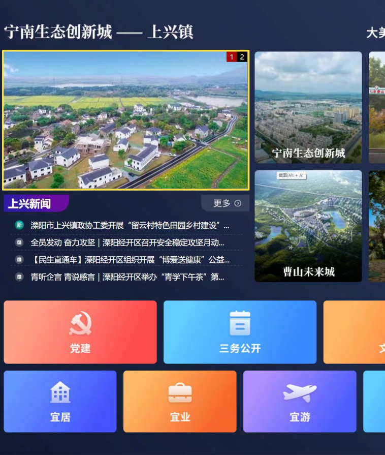 服务乡村振兴,融入社会治理。江苏有线打造“一镇一品、一村一特色”融合传播平台,全面融入党建、文化、旅游、治理、产业等地方特色内容,让基层党委政府信息发布有了新渠道、党建工作有了新阵地、文化传播有了新舞台、产业振兴有了新平台。