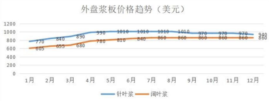 2022年浆板外盘一直维持高位且呈持续上涨趋势,尤其是阔叶浆板价格保持在较高位。不过岳阳林纸认为,未来随着国际供应量的增加,预计2023年浆板价格会逐渐下调。