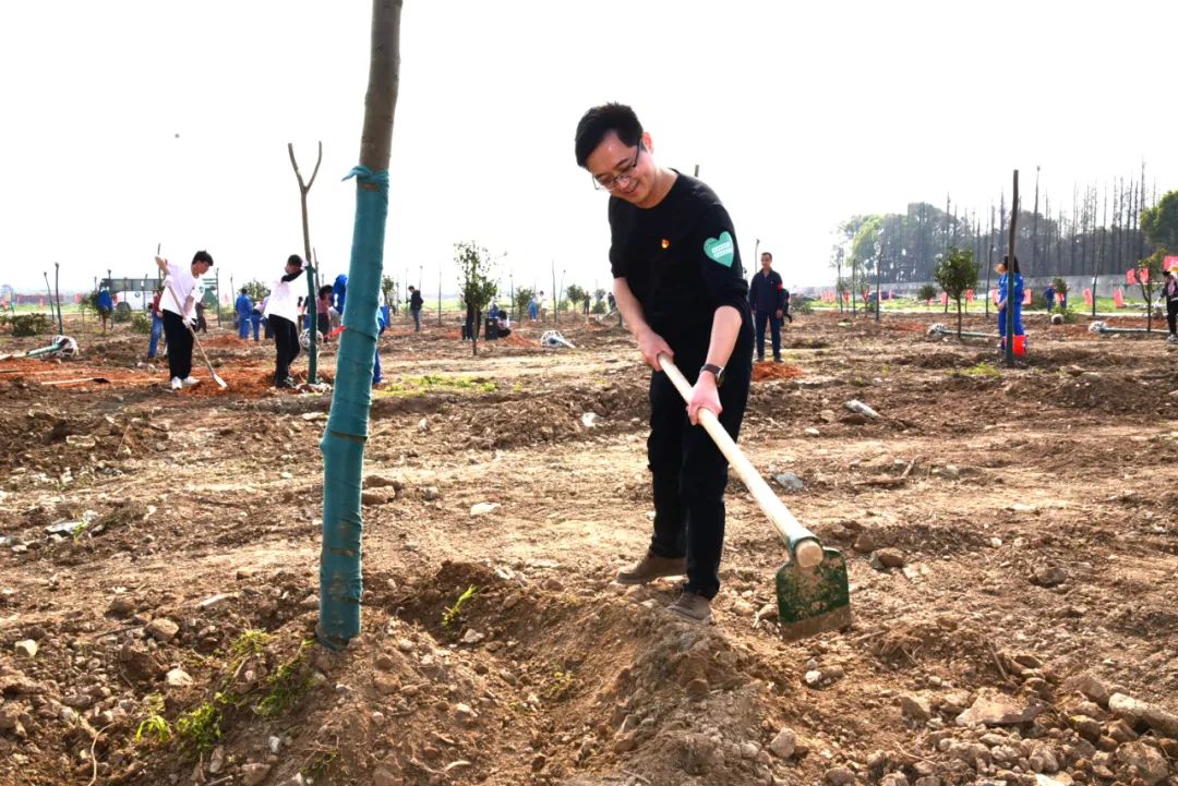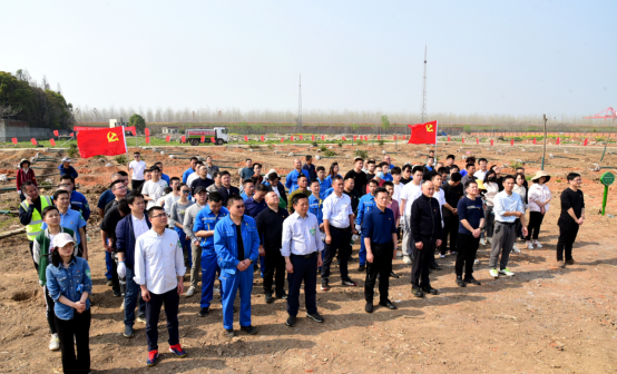 今年活动主场设在岳阳林纸拟建项目现场,岳阳林纸全体领导班子、先进集体与优秀员工代表、新进员工及老员工代表等共为项目树培土添绿,用心将“绿色蓝图”绘到底。