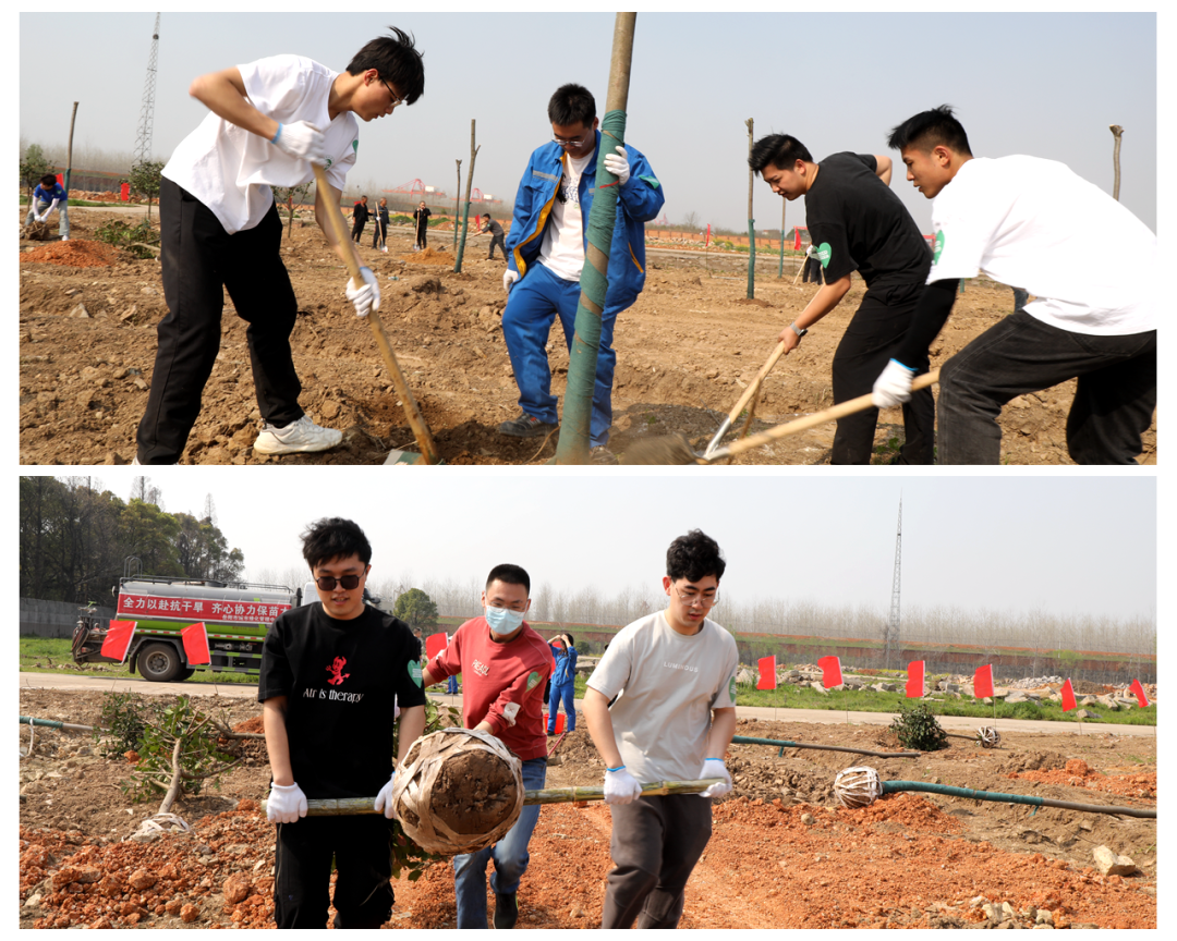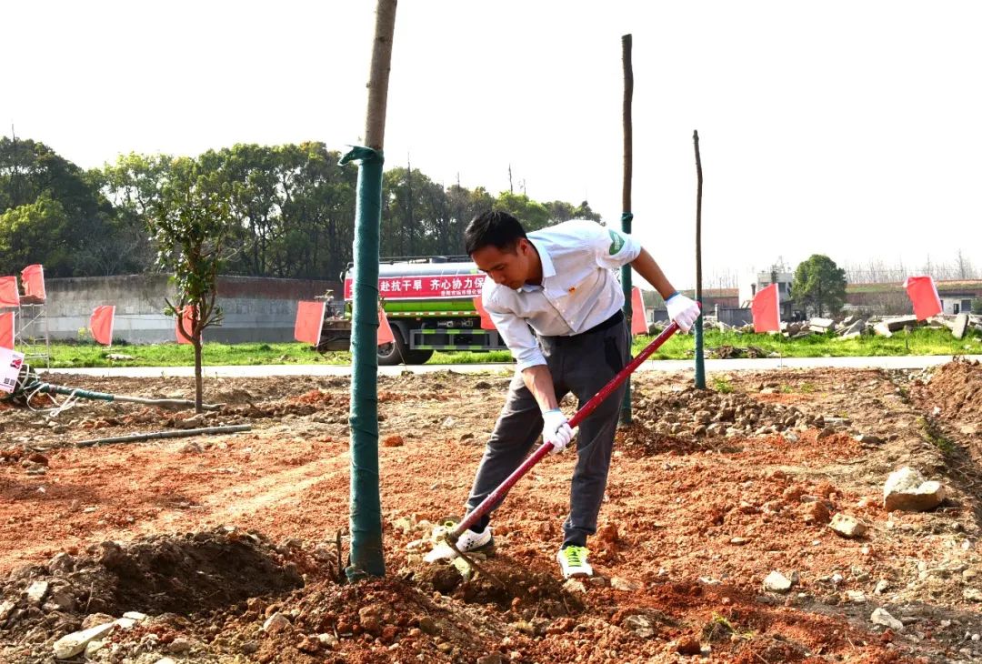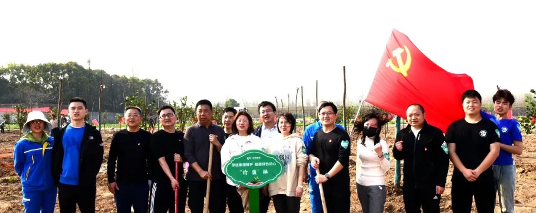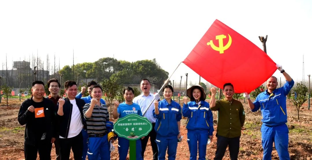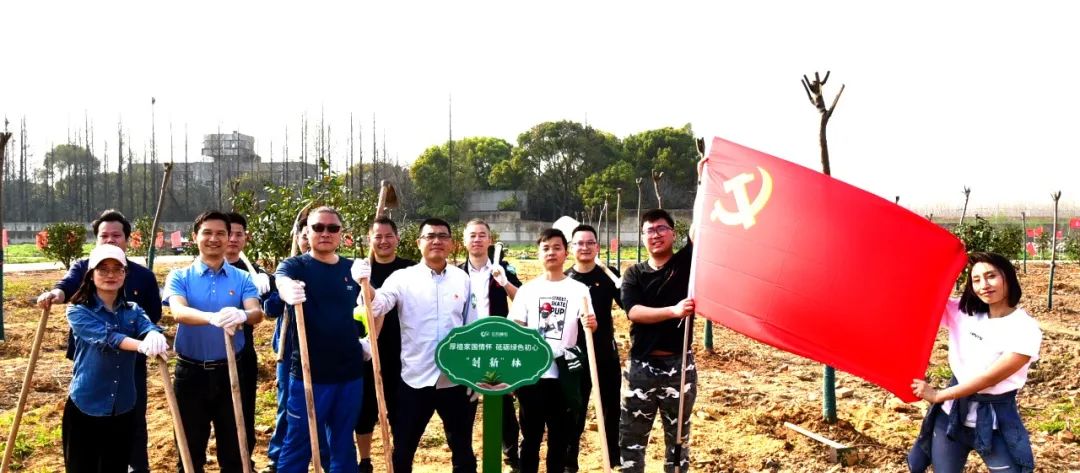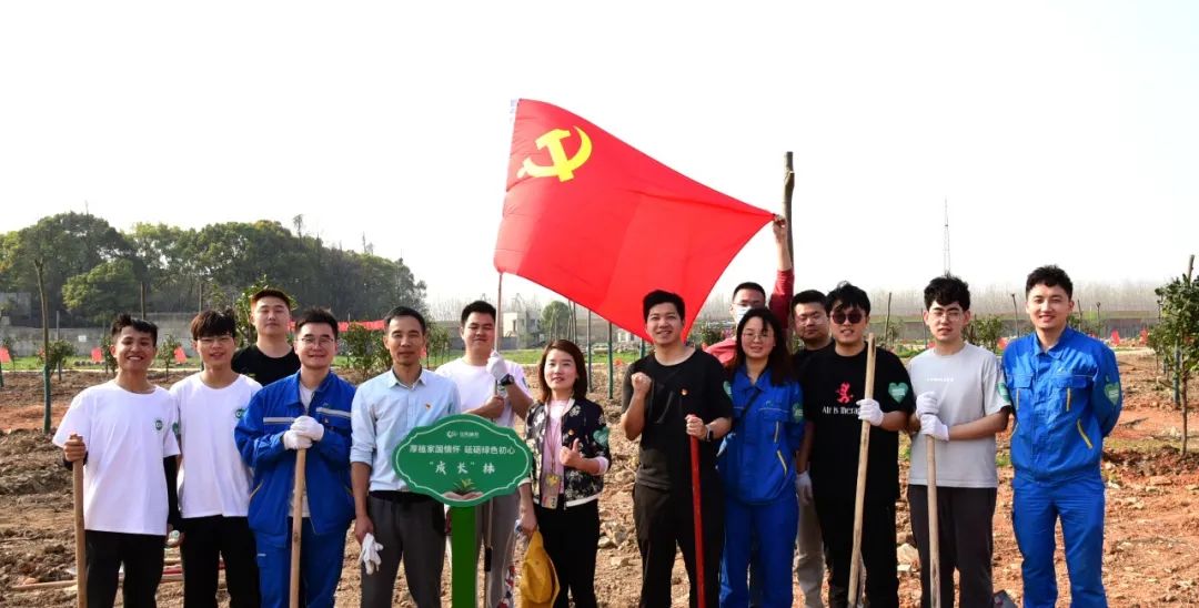 保增长,在党旗下成长。活动现场党旗高扬,英才、青蓝学员代表共同植树。他们用心植下一棵棵树苗,身后绿意盎然。经过近三个小时的辛勤劳动,一棵棵小树苗傲然挺立,随风飘摇,为春日里的项目建设工地增添了一抹盎然生机。