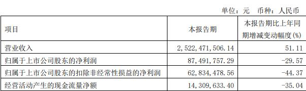 据岳阳林纸2023年一季度报告,报告期内,公司实现营业收入25.22亿元,同比增长51.11%;归属于上市公司股东的净利润8749.18万元,同比减少29.57%;归属于上市公司股东的扣除非经常性损益的净利润6283.45万元,同比减少44.37%;经营活动产生的现金流量净额1430.96万元,同比减少35.04%。