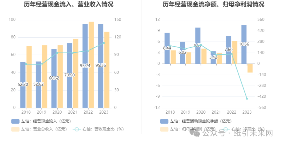 2023年,公司营业收入现金比为110.36%,净现比为-443.76%。