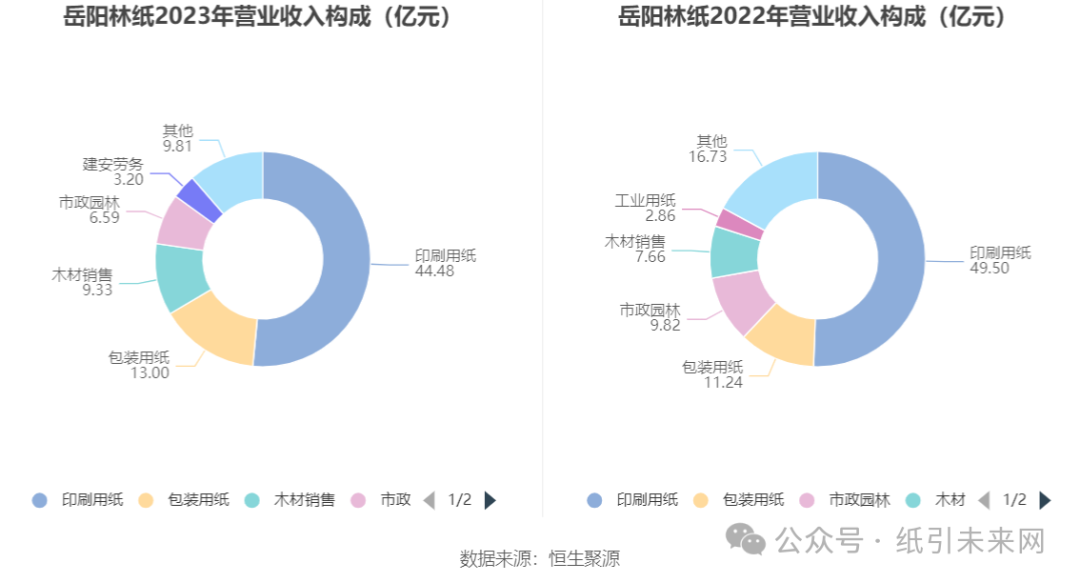 分产品看,印刷用纸、包装用纸、木材销售2023年毛利率分别为9.37%、7.54%、2.52%。