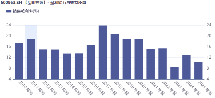纸业竞争激烈,需求有所收缩,价格降低,也导致公司的利润缩减。多年来,公司的毛利率呈现下滑状态,从2017年23.87%一路下滑至2025年的10.49%,甚至2023年曾达到8.53%的低点。
