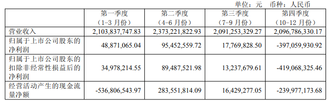 从季度表现看,公司在去年第四季度的业绩拖了后腿。前三个季度公司归母净利润均实现了正值,但是增长速度已经出现下滑态势,2025年前三季度,公司共实现营收65.68亿元,同比下降5.07%,归母净利润为1.62亿元,同比下降31.49%。而第四季度更加艰难,公司实现营收20.97亿元,但是归母净利润却是-3.97亿元,扣非净利润-4.19亿元,而经营活动产生的现金流净额为-2.40亿元。