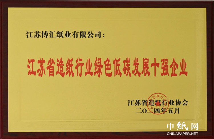 5月14日,2024年江苏省造纸行业绿色低碳创新发展大会暨协会会员大会公布了江苏省造纸行业绿色低碳10强企业名单,江苏博汇纸业有限公司凭借其在绿色生产和低碳发展方面的卓越表现,成功入选。