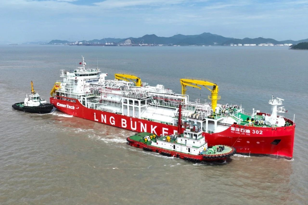 今年4月28日,“海洋石油302”圆满交付,相比原定工期提前了3个月。“海洋石油302”最高加注速度可达2000立方米/小时,不仅大幅缩短了大型LNG动力船舶的补给时间,其1.2万立方米的超大容量更是一次性满足多艘大型集装箱船的燃料需求。作为项目的“领航者”,丁长健表示,将继续聚焦海洋新能源新质生产力的发展,以更加坚定的信心、更加饱满的干劲,全力冲刺全年任务目标。