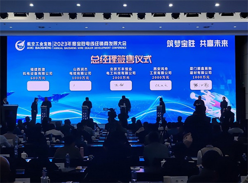 3月25日,以“筑梦宝胜,共赢未来”为主题的2023年宝胜电线经销商发展大会上,来自全国各地155家200多位经销商齐聚宝胜宝胜科技创新股份有限公司(以下简称:宝胜股份),现场签订采购合同1.24亿元。