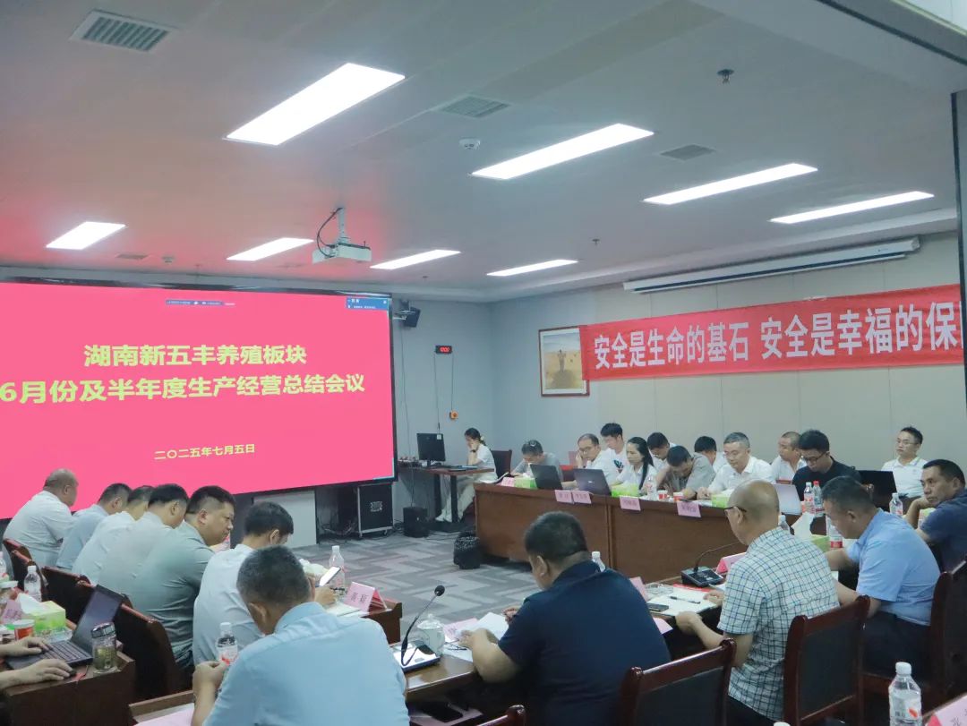 7月5日,湖南新五丰股份有限公司(以下简称“新五丰”)在衡阳事业部召开养殖板块半年度生产经营会议。新五丰党委书记、董事长万其见,党委副书记、副董事长、总经理朱永胜出席会议并讲话,党委委员、养殖事业部总经理唐威主持会议。