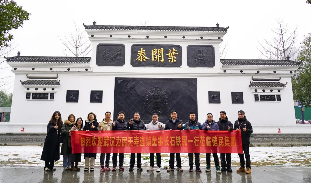 2月26日,武汉为民天寿大药房有限公司董事长石铁民、总经理石金等领导一行莅临健民集团参观并成功举办战略合作交流会议。