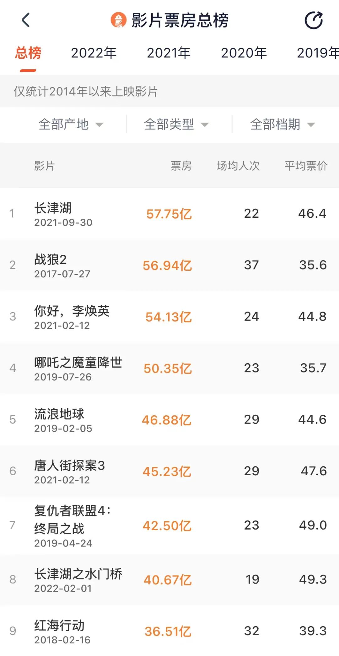 仅《长津湖》和其续作《长津湖之水门桥》就狂揽98.38亿元的票房,其首部作品也以57.75亿元成为了中国影史票房冠军。