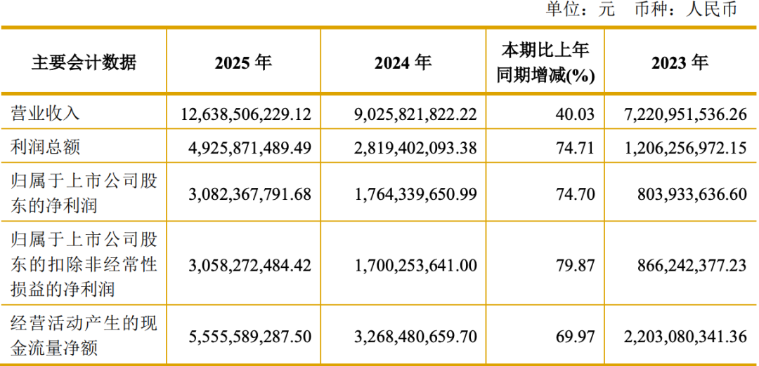 2025年,金价上涨给赤峰黄金带来丰厚利润。去年公司实现营业收入126.39亿元,同比增长40.03%;归属于上市公司股东的净利润30.82亿元,同比增长74.70%。