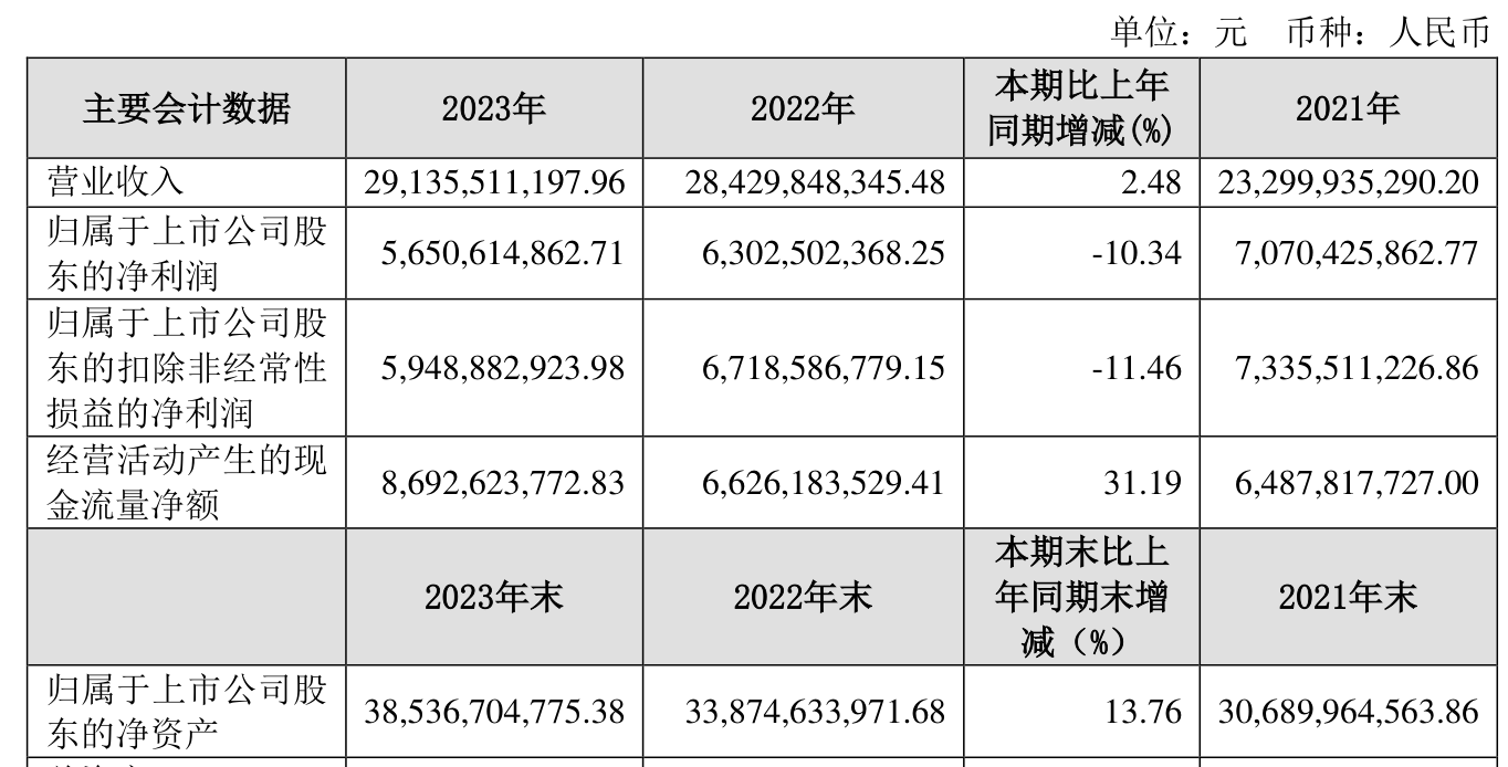 数据显示,2023年公司加权平均净资产收益率为15.72%,较上年同期下降3.85个百分点;公司2023年投入资本回报率为10.87%,较上年同期下降3.91个百分点。
