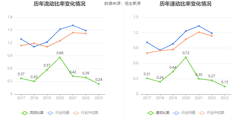 2023年,公司流动比率为0.24,速动比率为0.15。