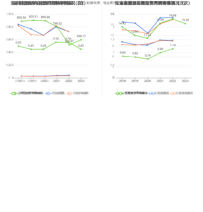 营运能力方面,2023年,公司公司总资产周转率为0.45次,上年同期为0.56次(2022年行业平均值为0.73次,公司位居同行业46/58);公司应收账款周转率、存货周转率分别为599.17次、15.36次。