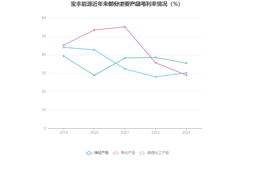 分产品看,烯烃产品、焦化产品、精细化工产品2023年毛利率分别为30.25%、29.02%、35.51%。