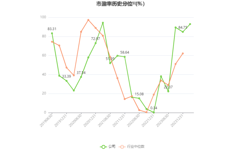 市盈率为负时,不显示当期分位数,会导致折线图中断。