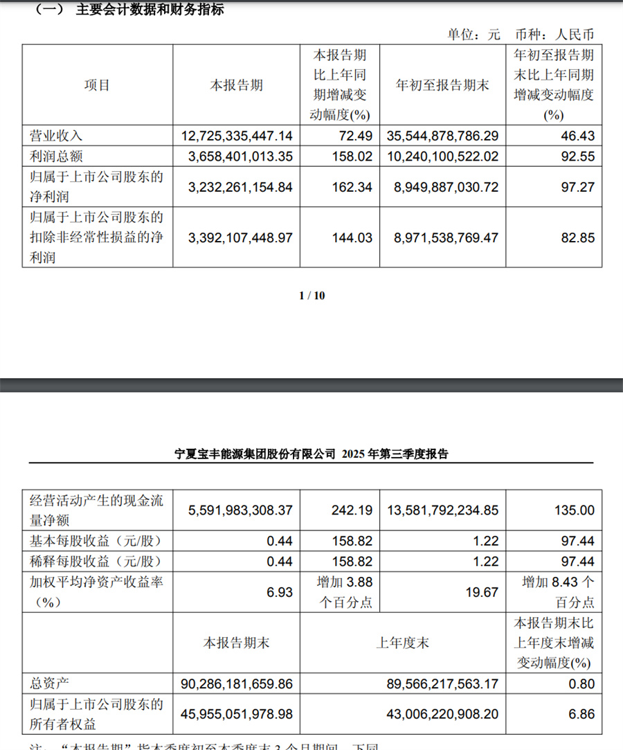2025年前三季度,煤化工龙头宝丰能源(600989)的营收和归母净利润分别为355.45亿元和89.5亿元,同比分别增长46.43%和97.27%,相较于上半年,公司营收和盈利均呈现加速增长的态势。